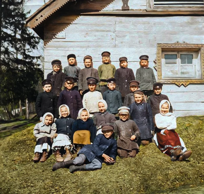 Группа крестьянских детей у южной стены мурановского погреба. Фотография любительская.