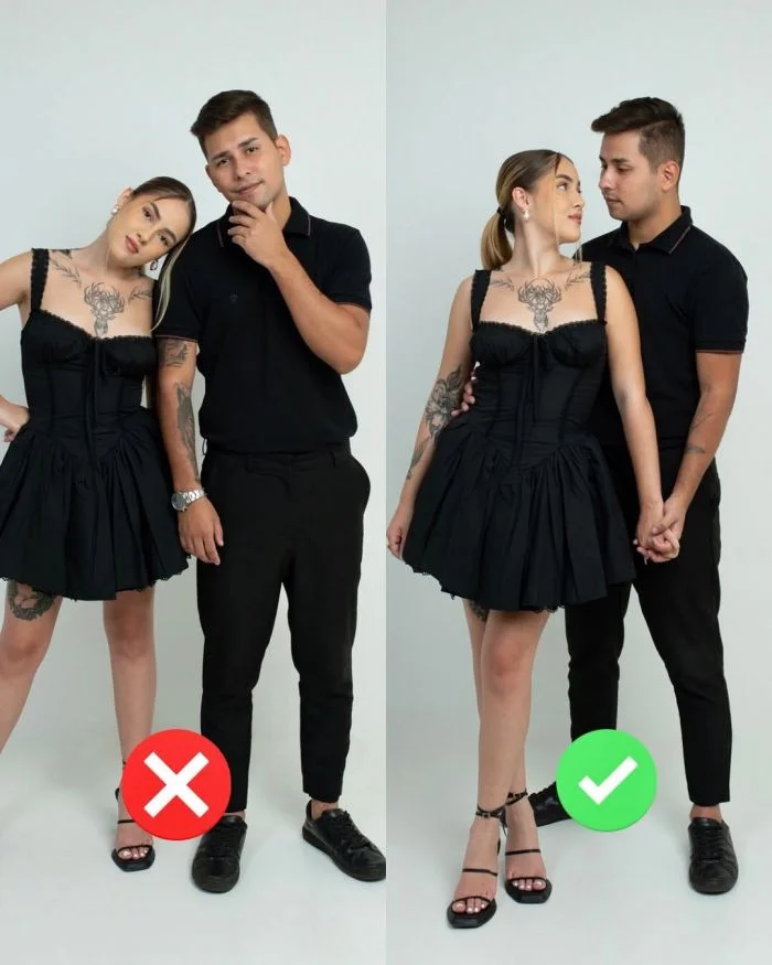 Впереди корпоративы и Новый год, а это значит, что предстоит сделать немало фотографий. Не обязательно для этого устраивать фотосессии в студии, ведь сделать классный кадры можно везде. Для этого нужно лишь хорошее настроение и правильные позы. Пара испаноговорящих блогеров как раз подбирают хорошие позы для парных снимков. Они показывают, как лучше вставать вдвоём, чтобы на кадрах всё выглядело гармонично.