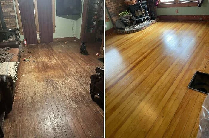 12. Предыдущие владельцы дома не ремонтировали пол, вот результат после реставрации