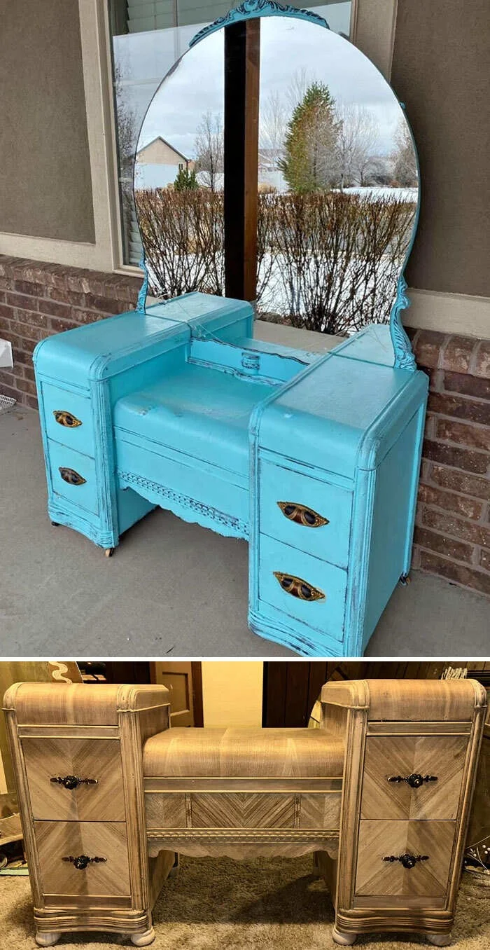 16. Я купила это невероятное трюмо за бесценок. Последние полтора месяца я тратила каждую свободную минуту на то, чтобы соскребать краску и шлифовать его, пока наконец сегодня вечером не дошла до этого момента