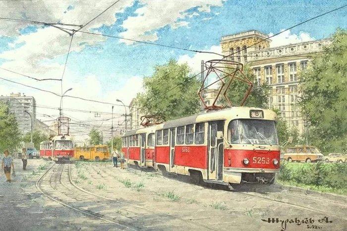 Погрузитесь в атмосферу прошлого с удивительными иллюстрациями Александра Журавлёва, которые мастерски передают жизнь советского общественного транспорта. Ностальгия и искусство в одном кадре.