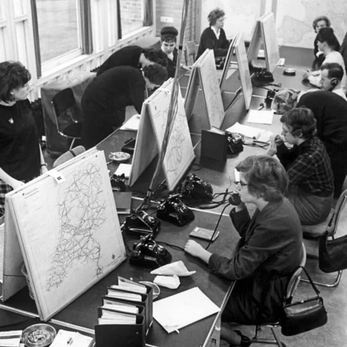 25. Горячая линия, на которую звонили автомобилисты, чтобы узнать маршрут, Нидерланды, 1963