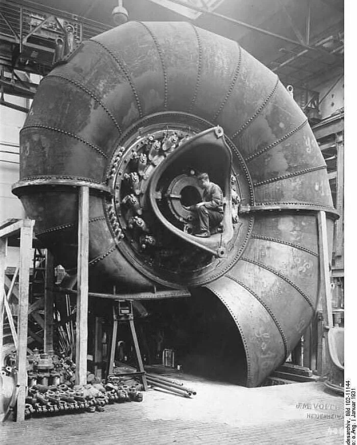 28. Спиральная турбина мощностью 9000 лошадиных сил, построенная в Германии для норвежской электростанции, 1928 год