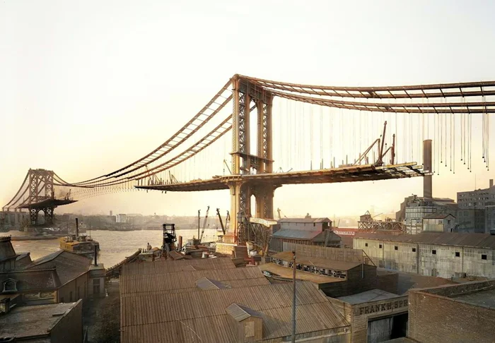 Манхэттенский мост в процессе строительства. США, 1909 год.