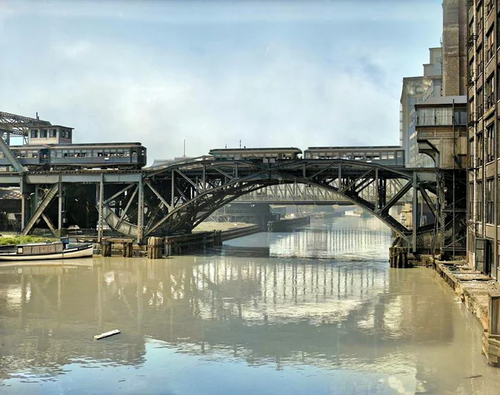 Мост Джек-Найф и река Чикаго. Чикаго, около 1907 года.
