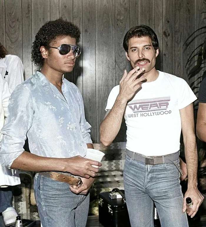 Майкл Джексон и Фредди Меркьюри за кулисами в Лос-Анджелесе, 1980 год.