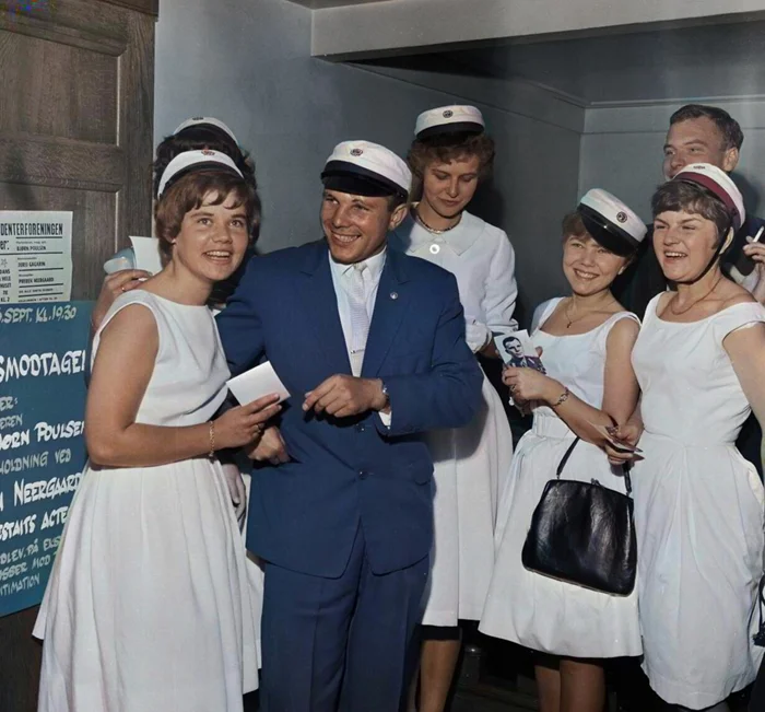 Юрий Гагарин и датские студентки во время визита в Копенгаген, 1962 год.