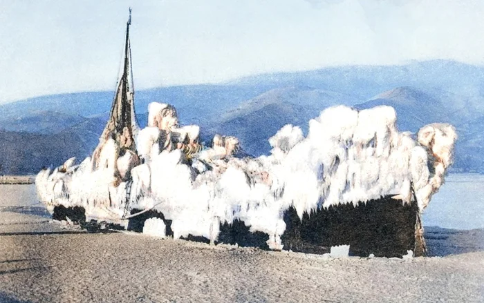 Пароход "Игорь" обледенел и выброшен на берег Норд-Остом, Новороссийск, 1899 год.