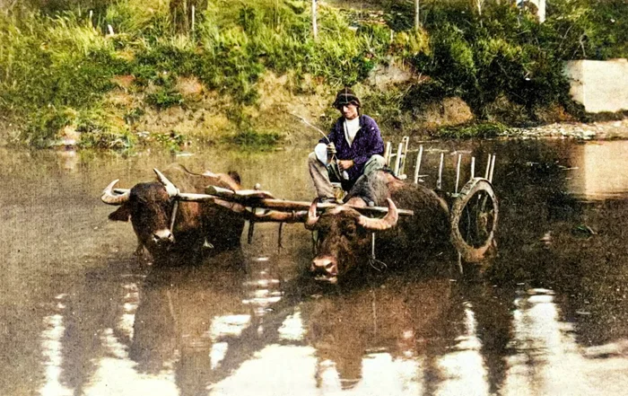 Буйволы в реке Верещагинке у Ермоловского парка. Сочи, 1900-1910 год.