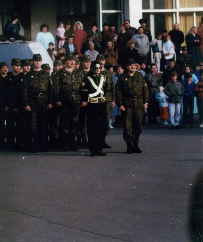 Майкл Джексон с солдатами Таманской дивизии в Алабино Московской области, 1993 год.