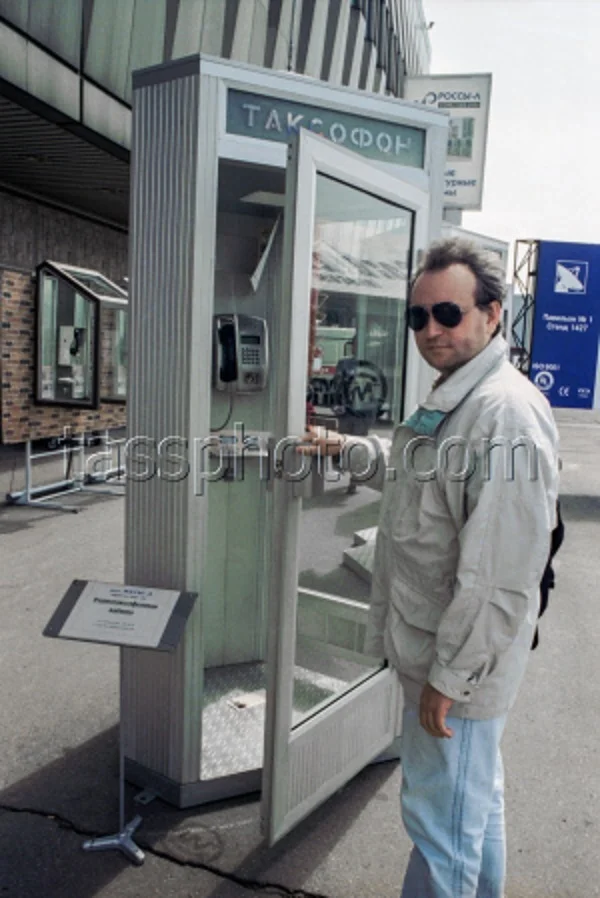 Радиотаксофон фирма "Россы-а" (Москва) , работающий вдали от населенных пунктов, на буровых, на полевых станах. Москва, X выставка "Cвязь-экспокомм", 1998 год.