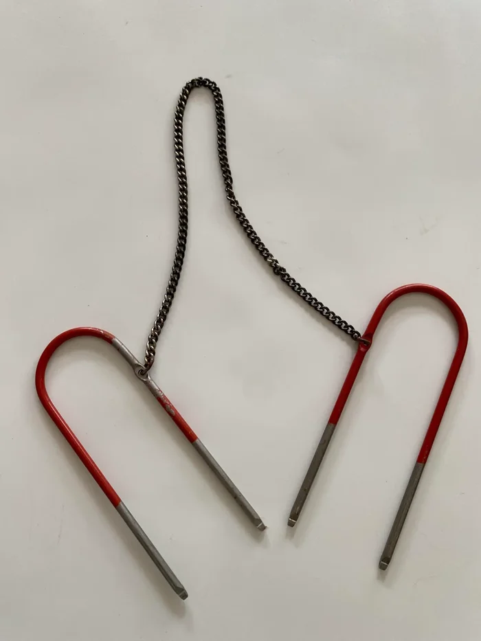 Это старый инструмент для того, чтобы достать магнитолу из машины. Кто-то автомеханик. Или вор магнитол.