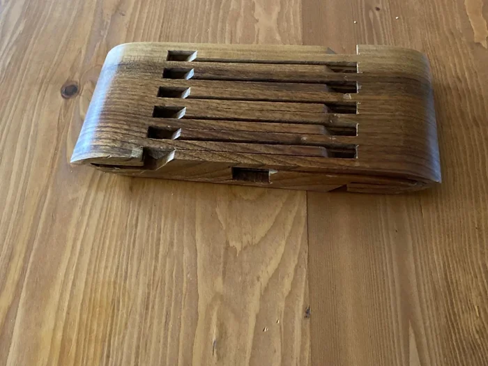 Это лаух - узбекская деревянная подставка для книг, вырезанная из одного куска древесины. В Средней Азии по разным причинам (кочевой образ жизни, малое количество древесины) с мебелью было не очень хорошо, поэтому книги приходилось читать, сидя на полу. Лаух позволял делать это с большим удобством.