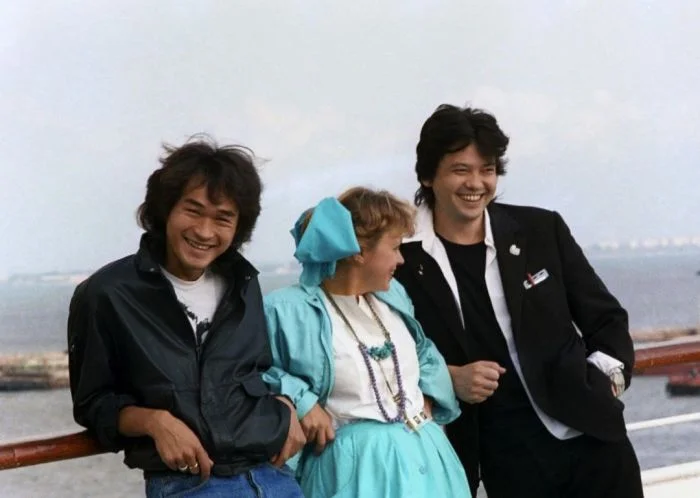 6. Режиссер Рашид Нугманов, Виктор Цой и актриса Нина Ильина на кинофестивале «Золотой Дюк», 1988 год
