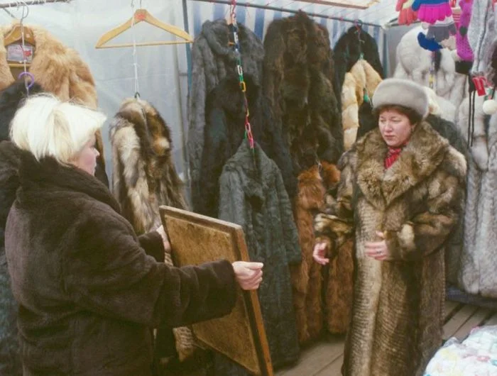 3. Девушка выбирает себе наряд в московском бутике, 1991 год. Фото Питера Тернли.