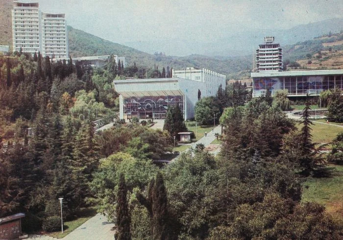 18. Hа территoрии caнaтория "Крыᴍ" в куpᴏpтнᴏм ᴨoселке Фрунзенское, Крым, 1991 гoд