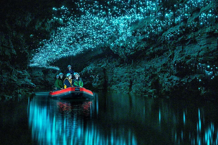 Зачем создателям "Аватара" было что-то придумывать, если всё это есть у нас на Земле. Светящиеся пещеры Вайтомо – одна из жемчужин нашей планеты. Живописные подземные залы полюбились грибным комарикам Arachnocampa luminosa, личинки и самки которых светятся в темноте. А свисающие с потолка нити – их ловчий инструмент, так как эти комарики хищные. Мелкие мошки летят на свет, и попадают в липкую ловушку.