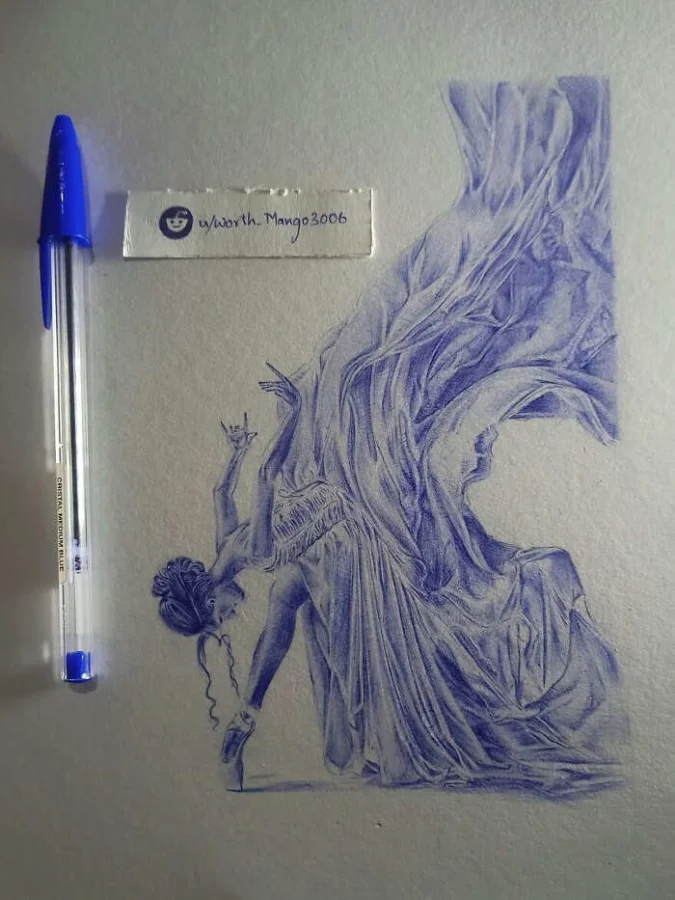 2. Рисунок шариковой ручкой — пример, как из простых материалов можно создать настоящее произведение искусства.