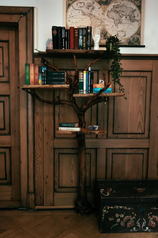3. Книжная полка из яблони, посаженной родителями мастера. Удивительная история и оригинальное применение материала.