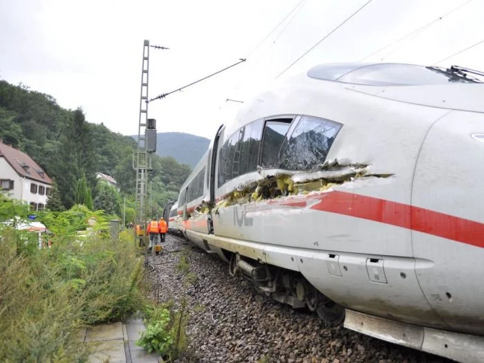 13. Последствия падения мусоровоза прямо на рельсы.