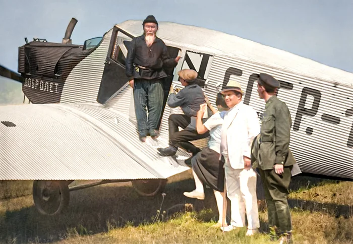 Делегаты Всесоюзного Съезда Советов летят на съезд. Самолет Junkers F-13 «Добролета», 1929 год.