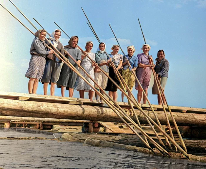 Тяжелейший труд, такими баграми вытаскивали бревна из воды, но вскоре этот процесс был механизирован.