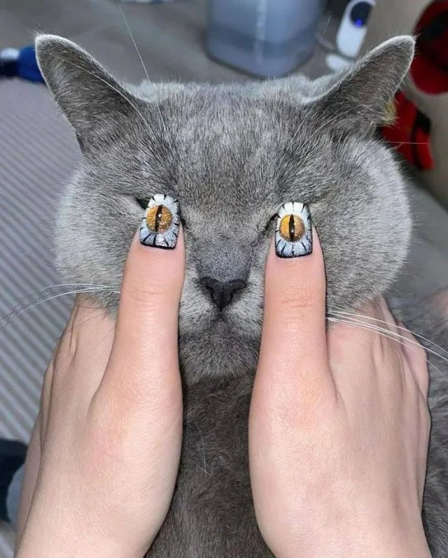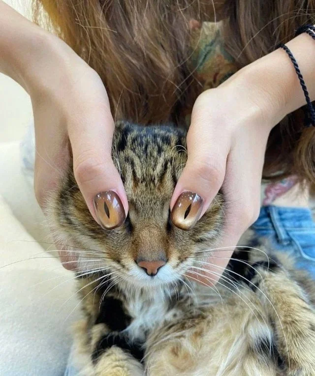 Как можно объединить любовь к котикам и красивым ноготочкам? Правильно, сделать маникюр с "кошачьими" глазками. Девочки, запоминайте идею! Выглядит действительно очень прикольно.