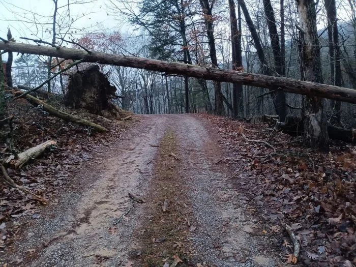5. Одно дерево преградило путь на дороге, а второе обрушилось на курятник.