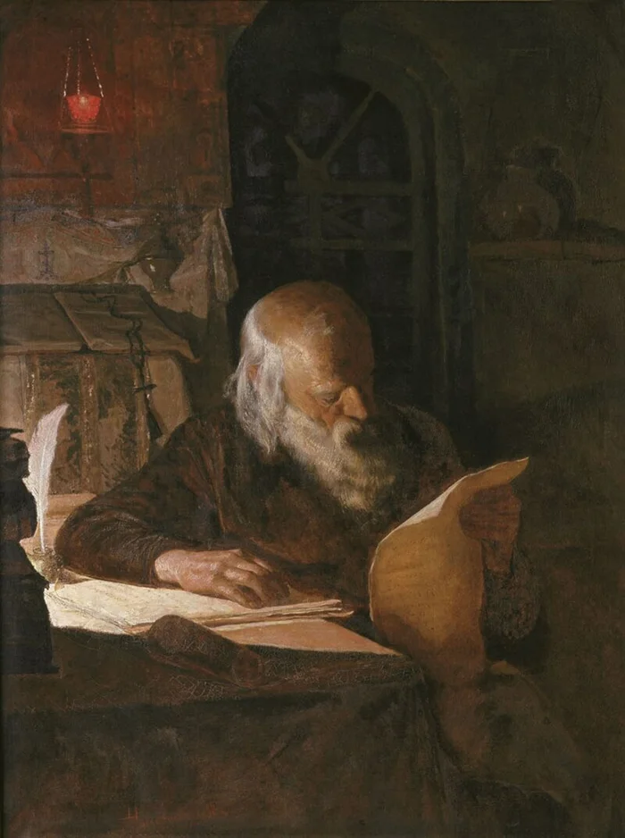 Историческая и религиозная живопись были тесно связаны. И здесь видно, как менялась мода в живописи, если, например, сравнить с дипломной работой наставника Новоскольцева Евграфа Сорокина, за которую тот три десятилетия назад получил аналогичную награду.