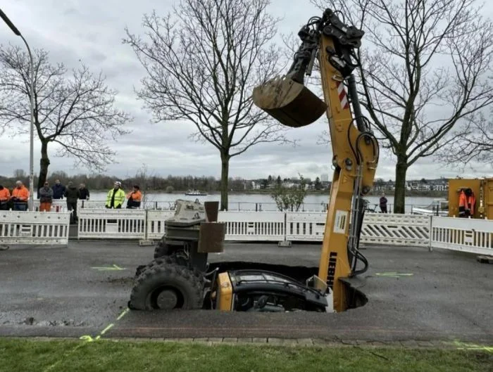 24. Гигантский экскаватор упал в болото