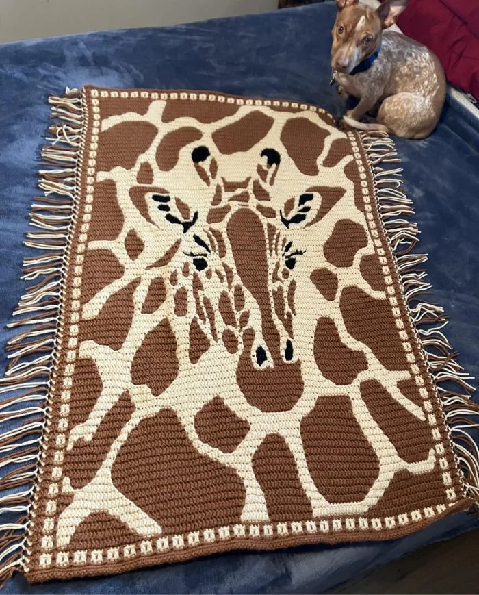 12. Одеяло с жирафом, сделанное крючком из пряжи