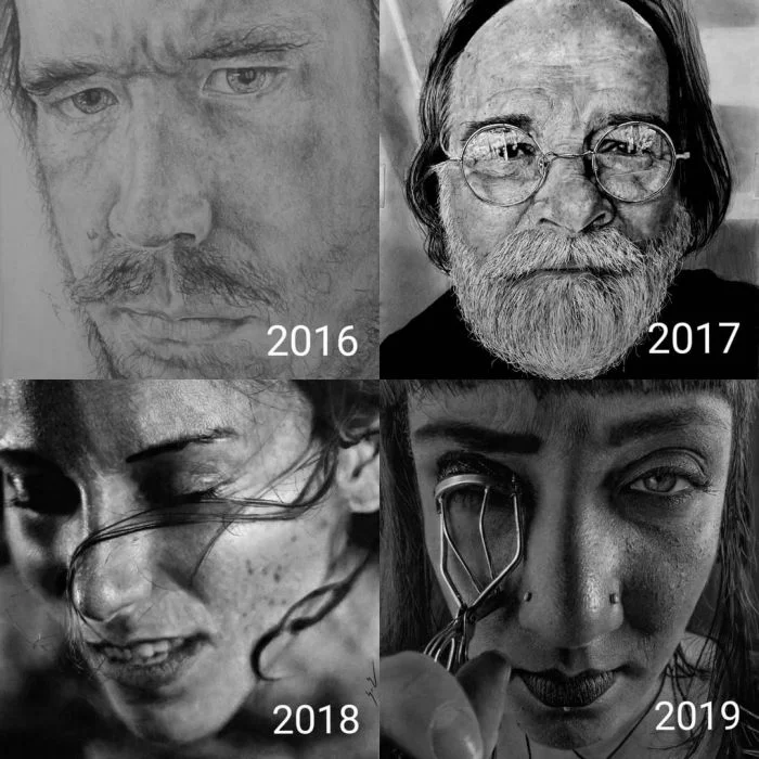 8. В течение некоторого времени я практиковался в фотореалистичном рисовании. Вот мои лучшие примеры прогресса каждого года