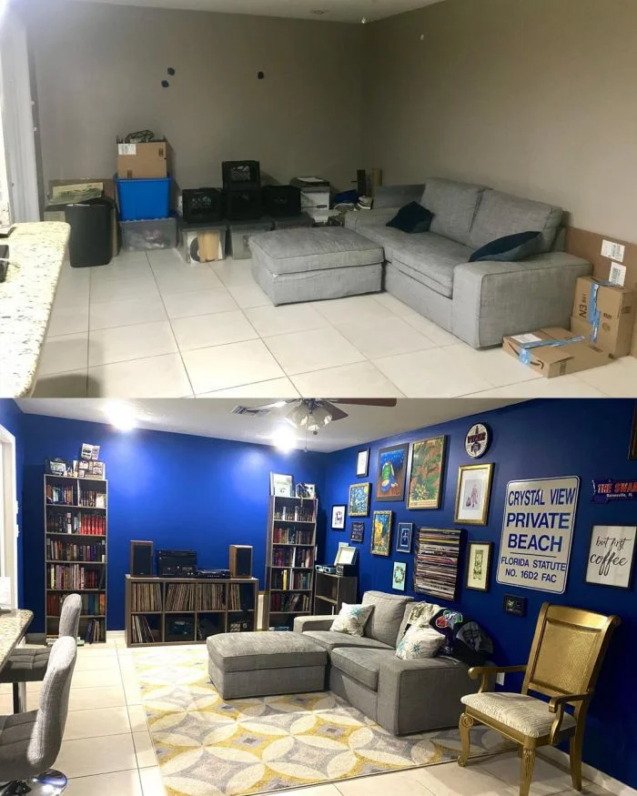 12. Я превратил старую комнату предыдущего владельца в свою библиотеку и комнату для записей. Получилось отлично