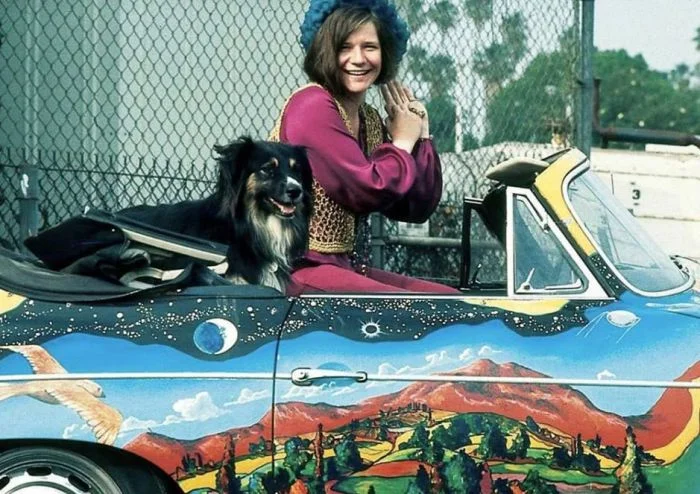 Дженис Джоплин со своим псом Джорджем в психоделическом Porsche 1965 года