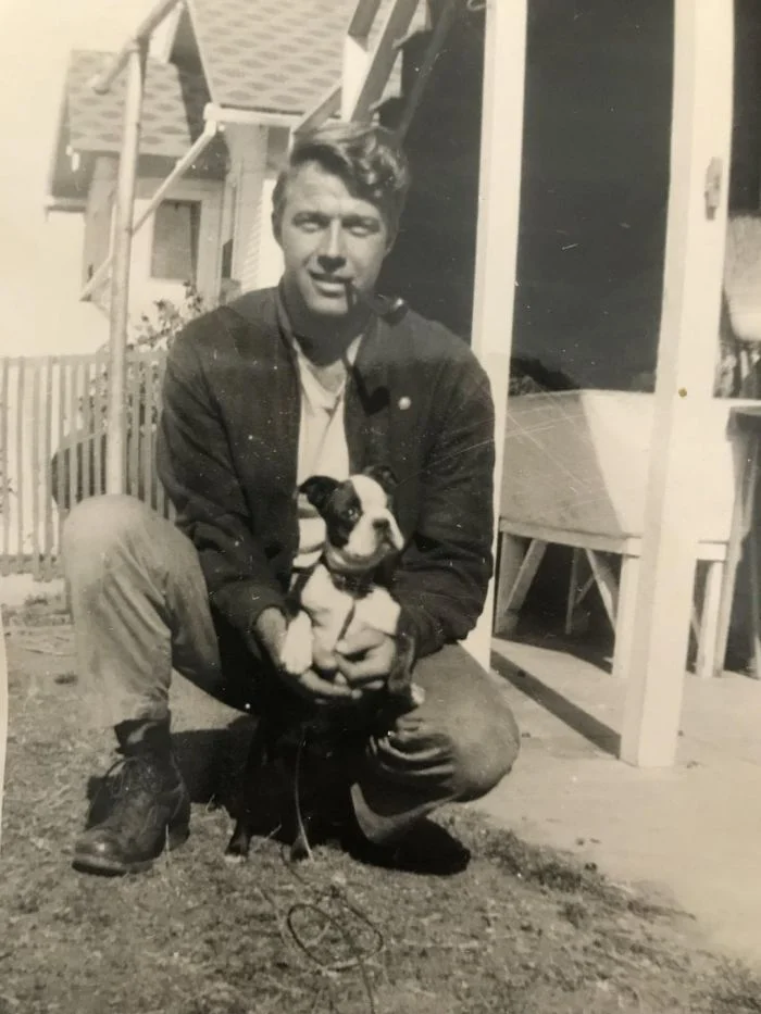 Фотография моего дедушке с Корки — первой собакой, которую он и моя бабушка завели после свадьбы, 1945 год