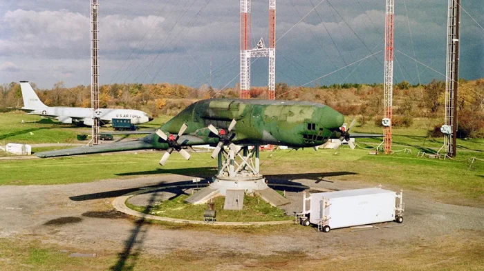 Почему вверх ногами? Вместо того чтобы летать над антеннами и тестовой аппаратурой, самолёты подвешивают вверх тормашками (обычно без хвостовой части) над измерительными устройствами или рядом с ними.