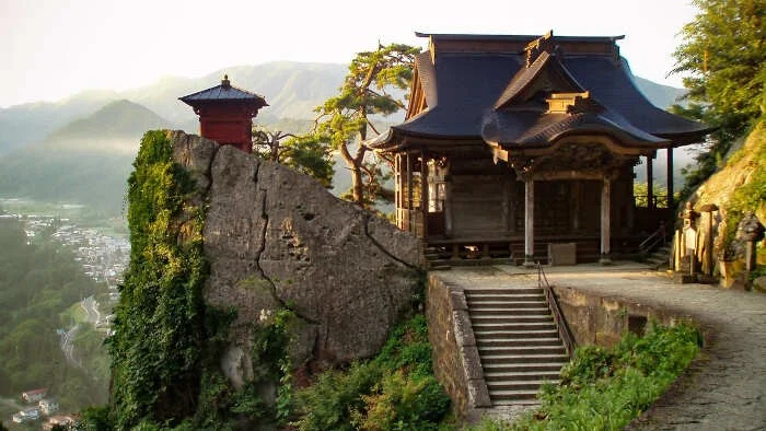 Буддийский храм Риссаку-дзи, известный как храм Ямадера, расположен к северо-востоку от города Ямагата в префектуре Ямагата. Благодаря своей исторической ценности и красоте окружающего его ландшафта, он считается одним из национальных сокровищ Японии. Чтобы добраться до храма, нужно подняться по лестнице в 1110 ступеней.