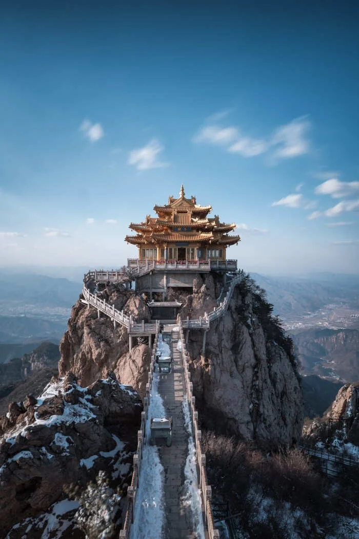 Эти древние буддийские храмы находятся на скалистом отроге в горах Улинг, и выглядят нереальными. Чтобы добраться до них, нужно пройти более 8000 шагов, примерно, за четыре часа. Верхняя часть горы называется «Золотая вершина». Храмы стоят на отдельных скалах, разделённых узким ущельем, пересечь которое можно по арочному каменному мостику в виде дракона.