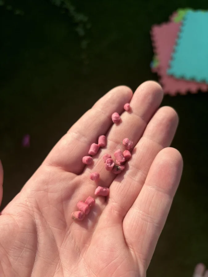 17. Нашёл в своём саду, мягкие розовые гранулы без запаха. У меня 2 собаки и ребёнок