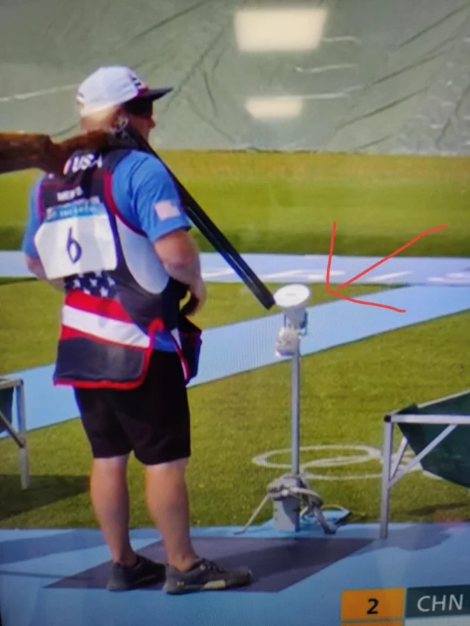 15. Что это за круглое устройство на стенде перед олимпийским стрелком?