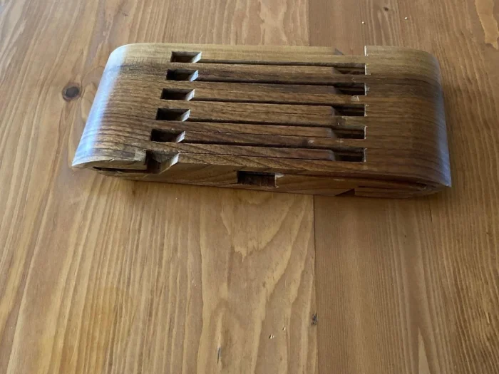 Это «лаух» или «лавх», раздвижная подставка для книг из Узбекистана. Вырезана из цельного куска дерева.