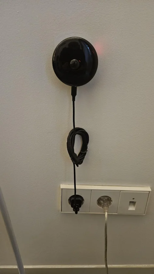 24. Круглое чёрное электронное устройство в испанском отеле. Шарик в центре немного двигается