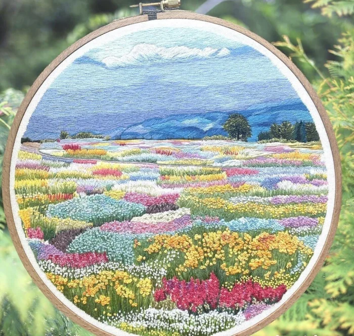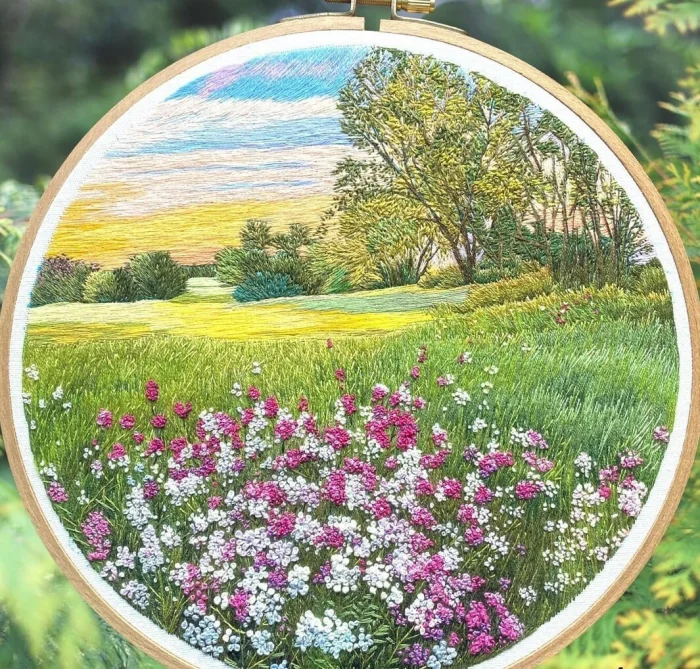 2. Пейзажная вышивка: что занимает больше времени - цветы с французскими узлами или деревья с маленькими точками?