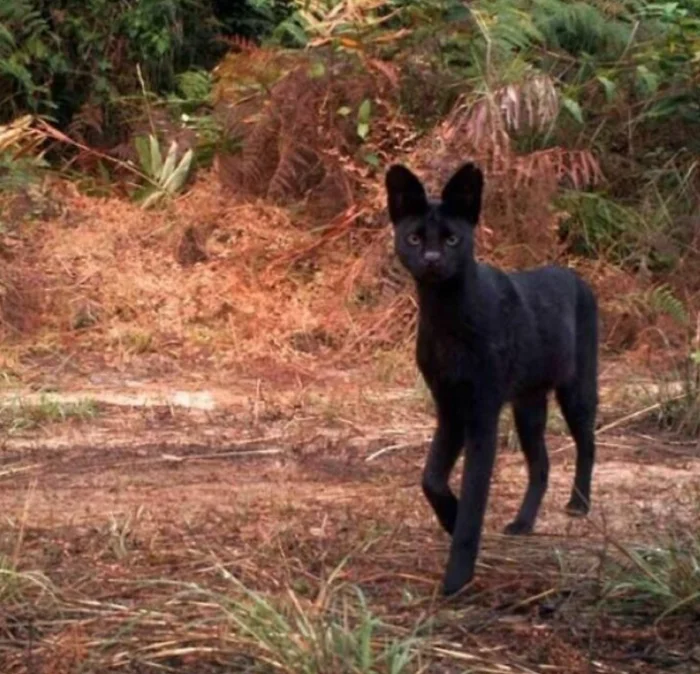 Фото очень редкого сервала (кустарниковой кошки) с выраженным меланизмом.