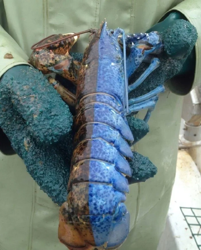 Среди животных на нашей планете есть уникальное явление, известное как гинандроморфия, что означает, что это существо является наполовину самкой и наполовину самцом. У этого лобстера мужская сторона коричневого цвета, а женская — синяя.
