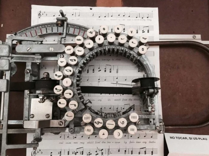 Так выглядела пишущая музыкальная машинка, с помощью которой печатались ноты для мелодий.