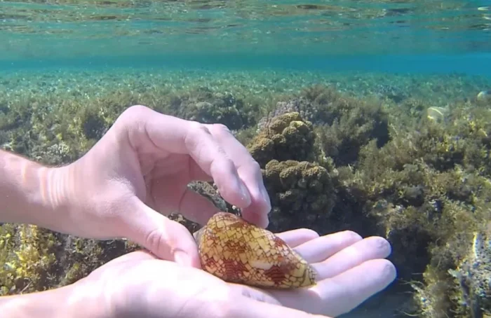 4. Этот юноша нашел текстильную конусную улитку и, не задумываясь, схватил ее голыми руками. Текстильные конусные улитки считаются одними из самых ядовитых существ на планете, и зафиксировано более 30 случаев летального исхода от их укусов.