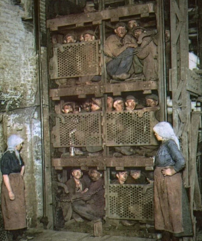 Шахтеры после смены едут домой, Бельгия, около 1900 года