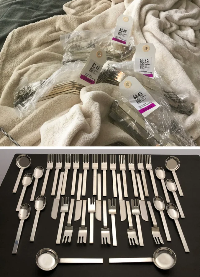 «Эти столовые приборы были в отдельных мешочках, и каждый стоил $3.5. Я обратила внимание, что они очень уж необычные. Обычно я покупаю только винтажные вещи, но решила рискнуть. Дома я провела небольшое исследование и была шокирована стоимостью этого набора. В интернете его продают за $3950».