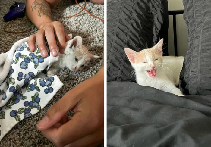«Моя сестра и ее парень нашли котенка в пустыне. Найденыша назвали Сноу. Кажется, теперь он самый счастливый котенок»